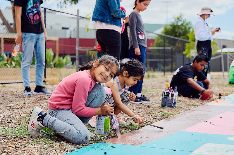 In collaborated with MAMAM we created a series of 5 ground murals, alongside benches and planter boxes, as part of a community-driven project commissioned by Wyndham City Council. The installation serves as both wayfinding and beautiful artwork, highlighting local landmarks and activities in the area.